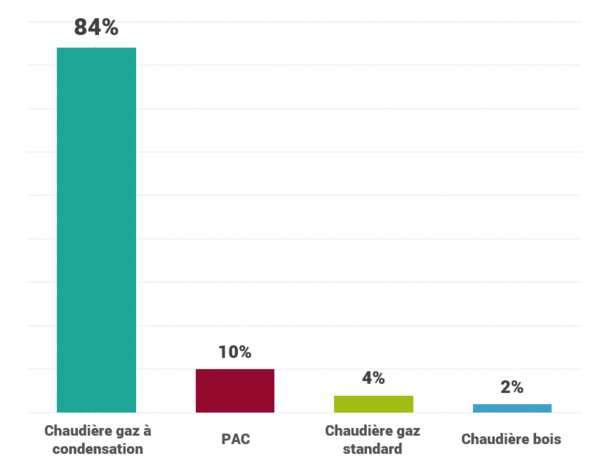 - 84 % des chaudières sont à condensation contre seulement 4 % de chaudières gaz standard.