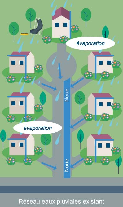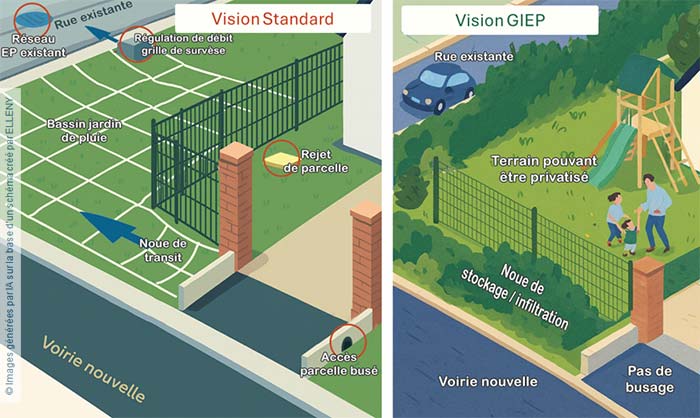Qu’est-ce que la gestion intégrée des eaux pluviales ?La gestion et l’évacuation des eaux pluviales en maison individuelle ne se limitent plus aujourd’hui à un simple raccordement aux réseaux. Elle constitue un véritable enjeu d’aménagement durable pour tout projet de construction. Définition : gérer l’eau de pluie directement sur la parcelle La gestion intégrée des eaux pluviales (GIEP) repose sur le principe central de gérer l’eau de pluie directement sur la parcelle, au plus près de son point de chute. Contrairement au modèle classique qui consiste à collecter l’eau pour l’évacuer vers les réseaux publics, cette approche vise à : limiter le ruissellement ; favoriser l’infiltration naturelle dans le sol ; encourager l’évapotranspiration par la végétation ; ralentir les écoulements lors des fortes pluies ; lutter efficacement contre les inondations ; désaturer les réseaux ; recharger les nappes phréatiques. Comme le rappelle le Guide des bonnes pratiques de la Gestion Intégrée des Eaux Pluviales de Terres d’Argentan – Normandie, l’objectif consiste à préserver autant que possible le cheminement naturel de l’eau, principalement par infiltration et évaporation. La gestion intégrée considère l’eau de pluie non plus comme une contrainte ou un danger à évacuer, mais comme une ressource à protéger et intégrer dans le projet. Une démarche de désimperméabilisation des sols La gestion intégrée des eaux pluviales s’inscrit également dans une logique de désimperméabilisation des sols qui vise à limiter les surfaces artificialisées/minérales afin de favoriser l’infiltration naturelle de l’eau dans les sols et de préserver le cycle de l’eau. En anticipant la gestion des eaux pluviales lors de la construction d’une maison individuelle, vous contribuez aussi à la prévention des inondations à l’échelle de votre quartier. Pourquoi intégrer la gestion des eaux pluviales dès la conception du projet de maison ?Anticiper la gestion des eaux pluviales en maison individuelle dès les premières esquisses du projet permet de : sécuriser le terrain ; limiter les risques d’inondation ; concevoir un aménagement plus durable ; limiter son empreinte carbone ; limiter les coûts à allouer à cet aspect d’un projet de construction. Une gestion des eaux pluviales mal anticipée peut entraîner des reprises de terrassement, des adaptations de voirie ou des refus de permis. L’imperméabilisation liée à la construction (maison, accès, terrasses, stationnement, etc.) augmente mécaniquement le ruissellement et donc la pollution de l’eau qui se charge en polluants en lessivant les sols. L’eau s’écoule alors plus rapidement vers l’aval, ce qui peut provoquer : des écoulements vers les terrains voisins ; une surcharge des réseaux publics ; un risque accru d’inondation en cas de fortes pluies. Intégrer des dispositifs de gestion et d’évacuation des eaux pluviales dès la conception permet de maîtriser les écoulements sur son propre terrain, de limiter les rejets vers l’extérieur et de respecter plus facilement les prescriptions du PLU ou du zonage pluvial. Ces aménagements présentent également des bénéfices environnementaux et paysagers, car ils contribuent à la biodiversité, participent au rafraîchissement en période estivale et améliorent la qualité du cadre de vie. En outre, ils réduisent l’empreinte carbone de la construction en limitant les terrassements et les surfaces minérales avec des solutions fondées sur la nature. Ainsi, la gestion intégrée des eaux pluviales en maison individuelle s’inscrit plus largement dans la maîtrise des réseaux et des installations d’assainissement du logement. En effet, elle empêche la saturation des réseaux et des stations d’épuration qui vieillissent et dysfonctionnent car leur entretien est complexe et coûteux. Pour aller plus loin, notre article consacré au diagnostic immobilier assainissement non collectif vous permet de mieux comprendre les obligations, les contrôles et les points de vigilance lors d’un projet de construction ou de vente. Cadre réglementaire applicable à la gestion intégrée des eaux pluviales Les normes relatives aux eaux pluviales dans la construction les plus contraignantes sont le plus souvent fixées au niveau local. Contrairement aux eaux usées, le raccordement des eaux pluviales au réseau public n’est pas obligatoire, mais vivement conseillé. Il dépend des prescriptions définies par la commune ou l’intercommunalité à travers : la réglementation PLU/PLUi ; le zonage pluvial ou zonage d’assainissement ; le règlement d’assainissement. Certaines collectivités imposent l’infiltration à la parcelle, limitent les rejets vers le réseau ou fixent des règles de débit de fuite. En outre, les schémas directeurs d’aménagement et de gestion des eaux (SDAGE) invitent les collectivités à : végétaliser l’espace urbain ; inclure la présence de zones humides ou de cours d’eau ; limiter les ruissellements et les débordements de réseaux (dispositions 4.2.2 et 4.2.3). Par ailleurs, le Code civil encadre les écoulements entre voisins. Un terrain situé en contrebas doit recevoir les eaux qui s’écoulent naturellement du terrain supérieur, mais un propriétaire n’a pas le droit d’aggraver cet écoulement par ses aménagements (drainage, rejet concentré, modification de pente). En ce sens, avant de déposer un permis de construire, il est donc indispensable de vérifier les prescriptions locales relatives aux eaux pluviales. Toutes ces prescriptions sont consultables en mairie ou sur le site de votre collectivité, dans le PLU, le zonage d’assainissement et le règlement d’assainissement. PPRI et gestion des eaux pluviales : deux notions à ne pas confondre Le Plan de Prévention du Risque Inondation (PPRI) et la gestion des eaux pluviales poursuivent des objectifs di