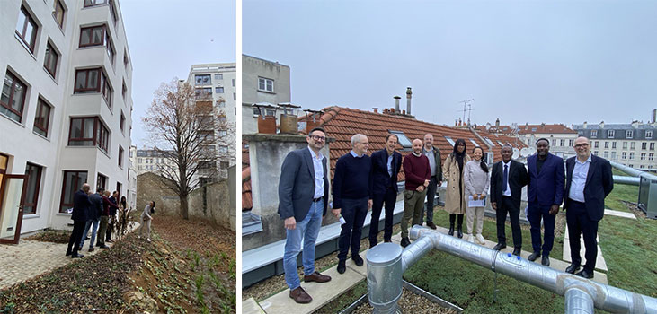 Patrick Cosset, Chester Leonce, et Kalthoum Ben M’Barek, représentants de la CTG, ont pu constater les solutions mises en place pour atteindre une consommation énergétique inférieure à 80 kWhep/m²/an, respectant ainsi le Plan Climat Air Energie de Paris.