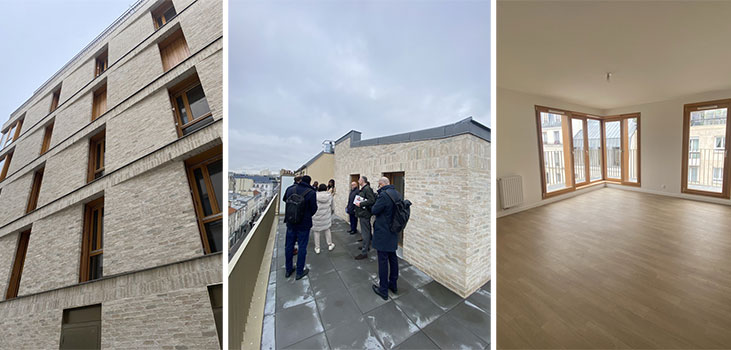 La deuxième visite, toujours dans le 11ème arrondissement de la capitale, a mis en lumière l’opération « 1 Impasse des 3 Sœurs ». Ce projet de construction de 10 logements est mené par Immobilière 3F, filiale du Groupe Action Logement. Il est engagé dans la certification NF Habitat HQE Très Performant et vise un niveau de performance énergétique RT2012 -20 % ainsi que le label Effinergie+. Le projet est d’ores et déjà labellisé Bâtiment Biosourcé.