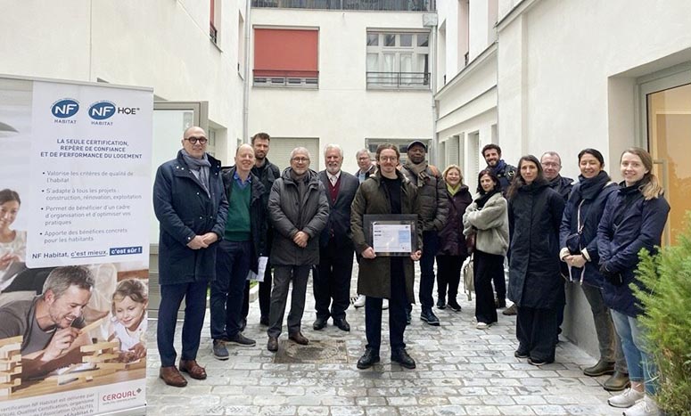 A l’issue de la visite, Gérald MAURUC a remis aux équipes de la RIVP, le certificat de réception attestant que les travaux correspondent bien aux ambitions initiales d’un niveau HQE 7 étoiles.