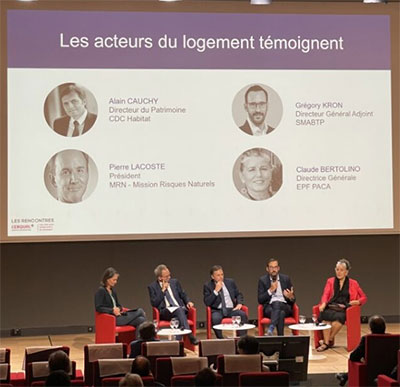 - Alain CAUCHY, Directeur du patrimoine de la CDC Habitat, a 3 ambitions : « lier efficacité énergétique avec transformation du mix énergétique et des comportements, et adaptation » ;