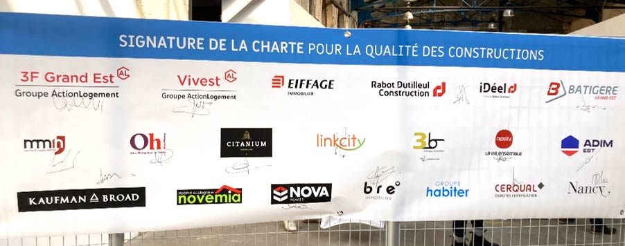 Les projets développés dans le respect de la charte de Nancy seront donc encouragés à s’engager dans la certification NF Habitat HQE avec le profil « Ville de Nancy ». Avec cette territorialisation de la certification NF Habitat HQE, la commune s’adapte au plus près des besoins des habitants afin de leur offrir des logements de qualité répondant aux enjeux de développement durable, de confort et de santé. Une convention a ainsi été signée par Mathieu KLEIN, Maire de Nancy, et Antoine DESBARRIÈRES, Président de CERQUAL Qualitel Certification, afin d’entériner le partenariat entre la ville et l’organisme certificateur choisi pour assurer la certification NF Habitat HQE des opérations.