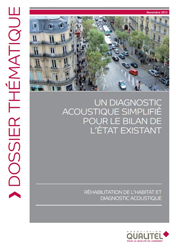 Pour permettre aux maîtres d’ouvrage de faire une première évaluation de la qualité acoustique de leur patrimoine, l’Association QUALITEL, avec l’aide de la DHUP, a développé une méthode de diagnostic simple et peu coûteuse. L’objectif est d’aboutir, au moyen de mesures ou de constats, à un diagnostic des locaux, sous forme de classement sur quatre niveaux pour cinq types de bruits : bruits aériens extérieurs et intérieurs, bruits d’impact, d’équipement, réverbération des circulations communes.