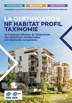 CERQUAL a dévoilé en 2022 son Profil Taxinomie associé à la certification NF Habitat-NF Habitat HQE. Ce Profil, qui répond à chacun des critères européens relatifs à la taxinomie, s’accompagne d’un dossier dédié. Véritable outil pédagogique, ce document recense l’ensemble des critères européens et permet aux acteurs concernés, de fournir des preuves de l’alignement de leurs opérations avec les exigences européennes.