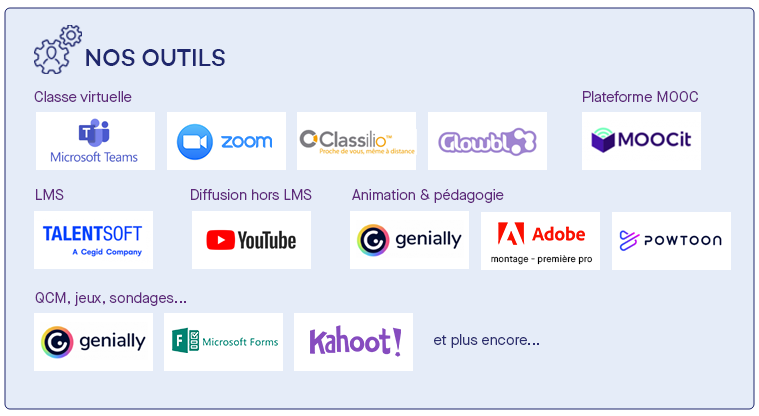 Nous utilisons de nombreux outils de digital learning pour vous apporter une expérience apprenante unique et engageante :