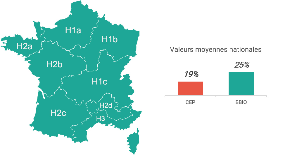 Dans la zone Sud, on constate un Bbio très élevé pour un Cep plus faible, ce qui traduit un travail sur le niveau d’isolation des parois mais des consommations énergétiques élevées, du fait de l’utilisation courante de l’électricité par effet Joule.