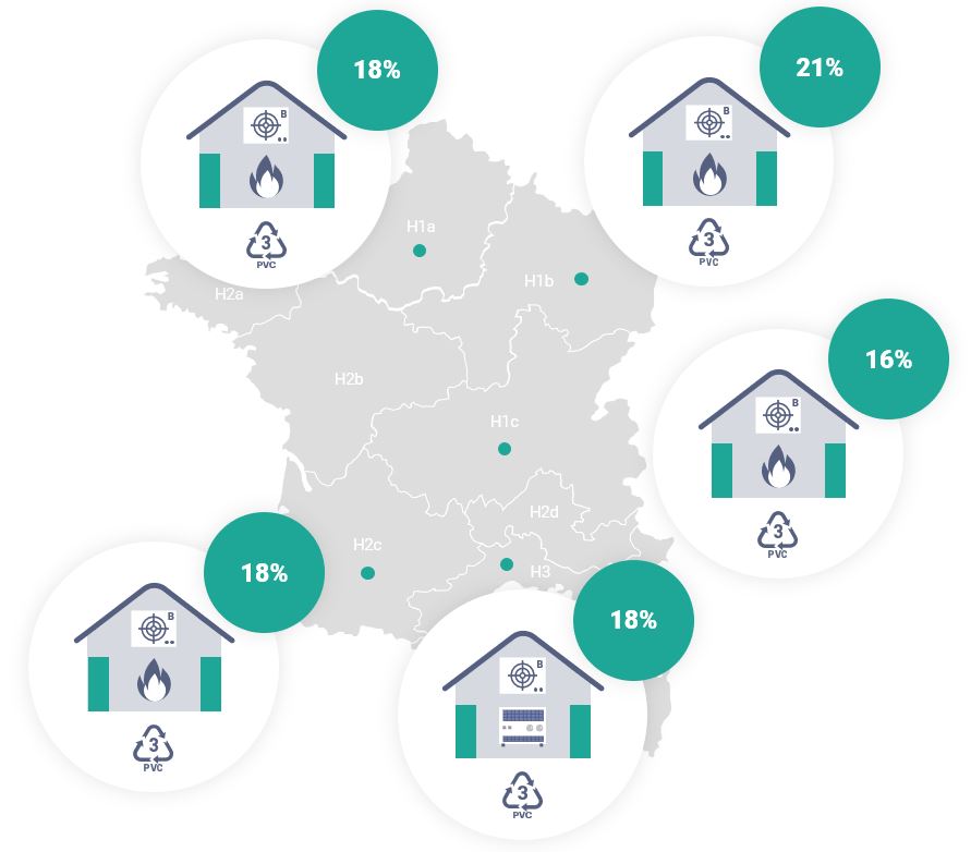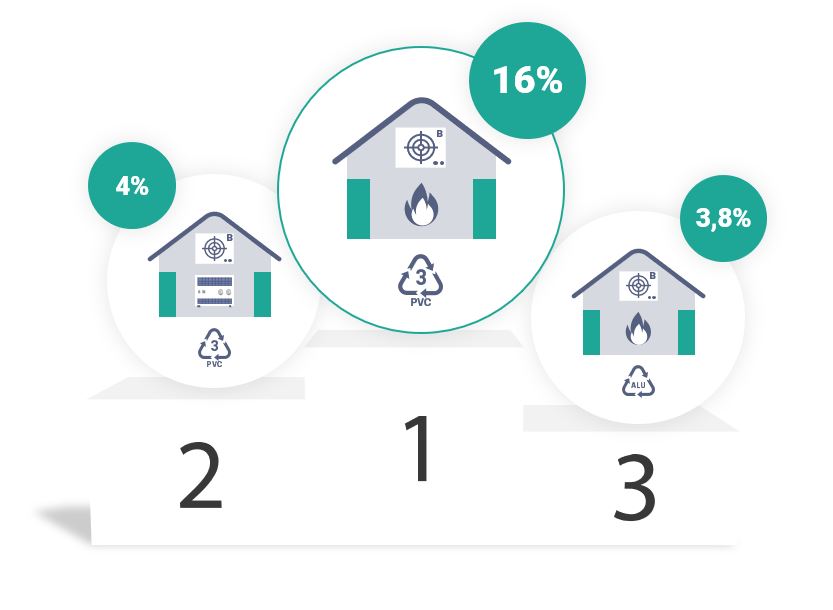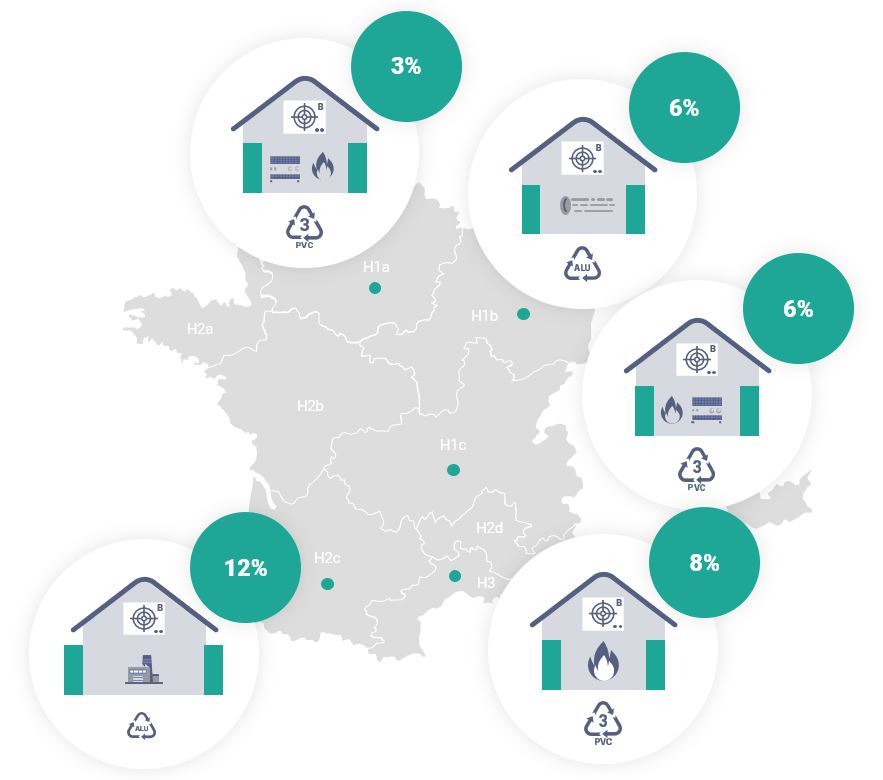 - La deuxième source de variation est est la menuiserie, qui passe à l’aluminium, dans 3,8 % des cas.